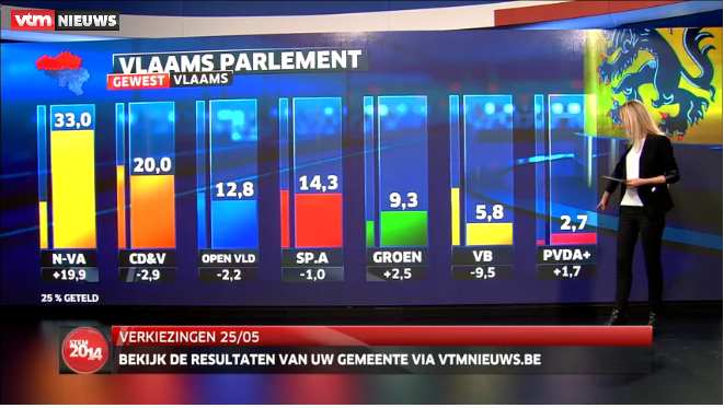 ![]() momenteel nationaal spa -1.1% voor de kamer en -1.6% Vlaams.