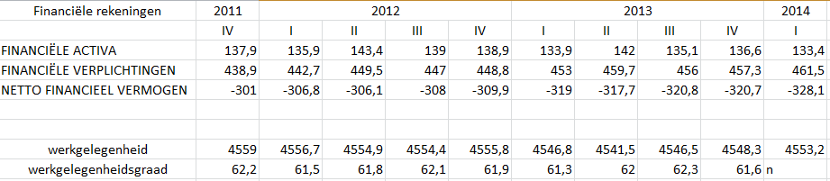 De economische groei is in het tweede kwartaal volledig stilgevallen, de export daalt verder. En dat ondanks de stijging van de omzet van goedkope pils en rood-geel-zwarte dweilen. Met die cijfers stevenen we opnieuw af op een begrotingstekort boven de 3%, en een hernieuwde curatele van de EU. Het "goeie" cijfer van het eerste kwartaal blijkt volledig te wijten aan het goede weer waardoor de bouwsector kon blijven doordraaien. Belgische economie amper gegroeid Het ziet er zo naar uit dat de volgende regering met 16 miljard niet zal toekomen om de financiële afgrond waarin Di Rupo ons stortte te saneren.