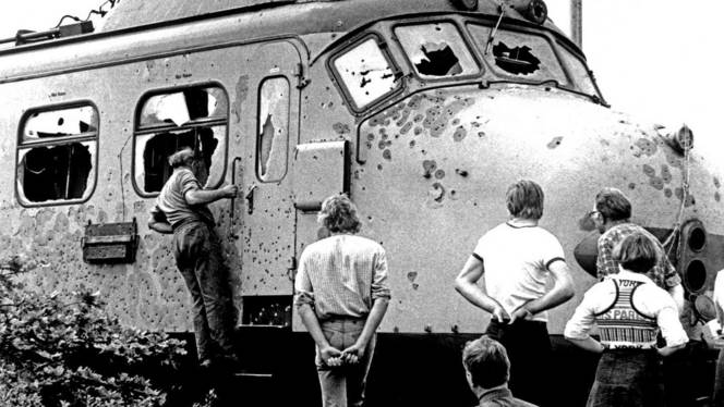 Wel wat denkt u als u naar deze foto kijk? Beschieting vooraf op plaatsen van de trein waar kapers gelokaliseerd waren (niet bij gegijzelden). Meen dat één van de kapers 44 kogels in z'n lijf had. Uitschakelen, niet doden .... ![]() |