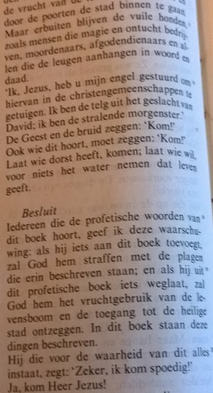 Openbaringen 22 laatste paragrafen. Ben op gsm. Copy paste gij het eens uit circe.