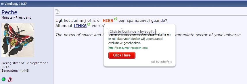 ![]() Ik zat daarjuist op het forum en ineens kreeg ik overal reclame, zie foto als voorbeeld.