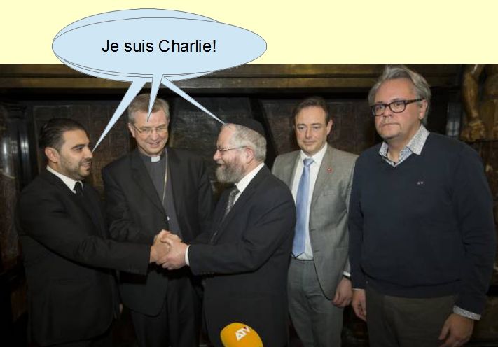 Zie daar: het triumviraat van de monotheïstische haat op de hoogmis van de ultieme hypocrisie, gefaciliteerd door het overkoepelend demagogisch kader van Bartje Burgervader.