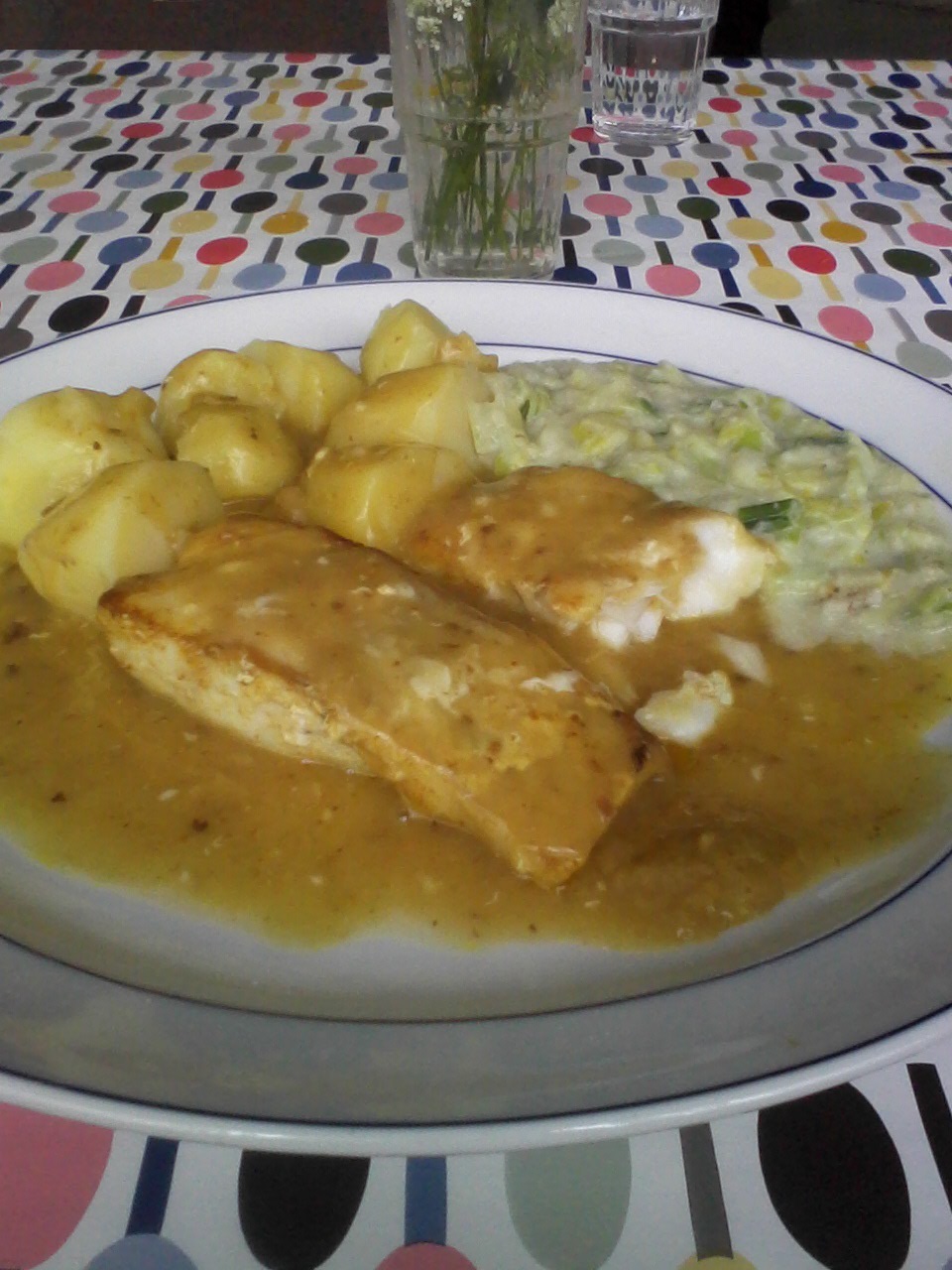 Avondeten Chez Libro: gebakken Schotse zalm met brocolli en aardappels. Ik heb spijtig genoeg wel alleen maar Alken-Maespils van de Aldi in de koelkast staan.