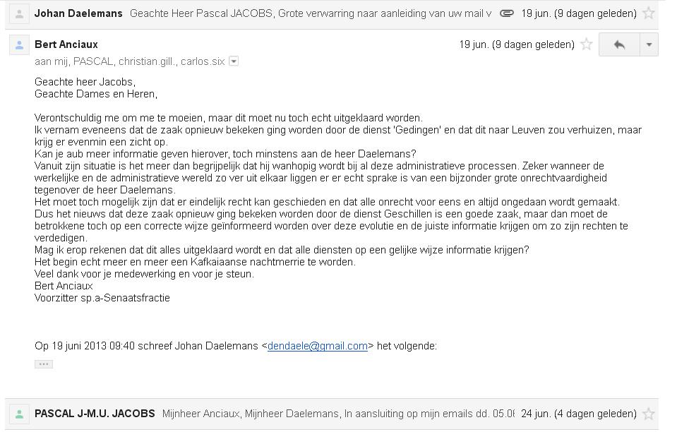 Tijd om terug eens wat klokken te laten luiden. Wie is er vandaag de grote mijnheer bij onze fiscus? Sinds het overlijden van de Heer Carlos Six heb ik het niet meer gevolgd. Adjunct was Pascal J-M.U. Jacobs. Zou die bevorderd zijn? Ik zal hem eens een mailtje sturen. We hebben in 2013 al heel wat informatie uitgewisseld. Wel nog onder toeziend oog van Mijnheer Carlos Six.... Nu moeten jullie weten dat de fiscus in de loop van 2013 en 2014 alle informatie heeft ontvangen om in dit dossier een juiste beslissing te treffen. Eens kijken waarom het nog steeds niet lukt. |