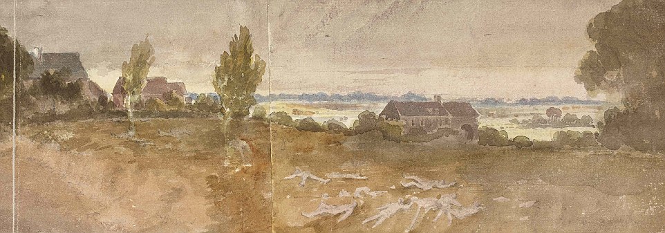 Watercolour of the Battlefield of Waterloo from near Rossomme. The watercolour paintings are believed to have been painted by an Irish civilian who was travelling in Belgium at the time and have gone on show at the British Museum