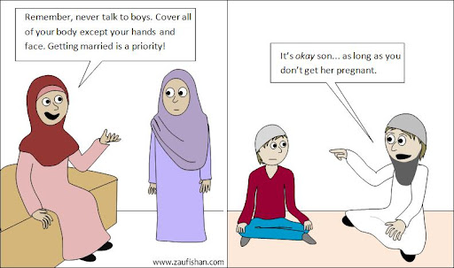 Als we naar de islamitische cultuur gaan kijken dan zien we ouders die aan hun dochters verkondigen dat hun ‘verpakking’ niet geschonden mag worden. Hun zonen krijgen dat brandmerk niet, blijkbaar kan hun ‘verpakking’ niet geschonden worden. Er wordt wel verwacht dat ze van hun ‘eigen’ vrouwen afblijven. Laat staan dat een niet-gelovige er mag aankomen.