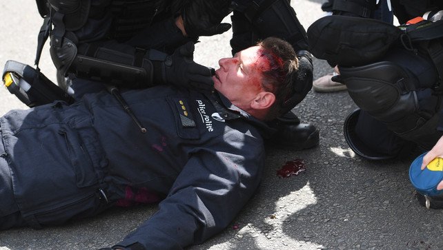 De commisair vloog daar dus snel op af, waardoor hij geen rugdekking meer had. Of dat nu waar is of niet, maakt mij allemaal niet uit. Illegaal geweld is uit den boze. Die extreme communisten zijn er maar op uit op heel het boeltje op te ruien. Dat die commissaris (hij wel of niet de uitzondering, en/of vele anderen daar in Brussel met hem) nogal hardhandig en ongenuanceerd optreden: vraag het maar eens aan flaminganten die bijwijlen eens gebruik willen maken van de vrije meningsuiting in de hoofdstad. .