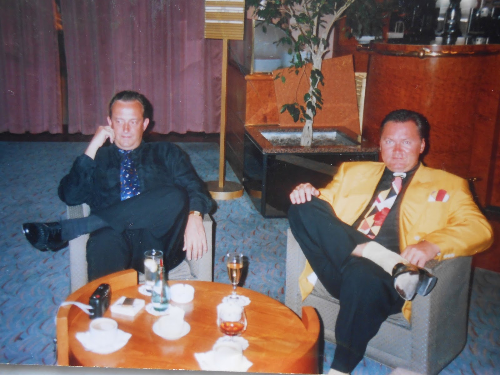 Dit zijn dassen gekocht tijdens het filmfestival van Cannes bij BUNICCI Aan deze dassen ziet men dat iemand niet aan het werken is. Ik heb ook de volledige Versace collectie (105) Alleen rijke mensen durven en kunnen zulke klederen dragen ,niemand draagt tijdens het filmfestival een bruin ,blauw of zwart kostuum Het is of smoking of gekleurd op zwarte broek. Tot 2002 was iedereen in 5 sterren hotellen zo gekleed ,daarna door de mode van de bufetten bij diner is dit stilaan verloren gegaan. Ik heb 40 verschillende vesten die op een zwarte broek worden gedragen. Is nu geen mode meer en ze hangen in de kelder in KNOKKE of hier in Tenerife.Hier heb ik ze nog aangehad met het galadiner van vrijdag avond. Ben net nuchter ,had teveel goede wijn gezopen.