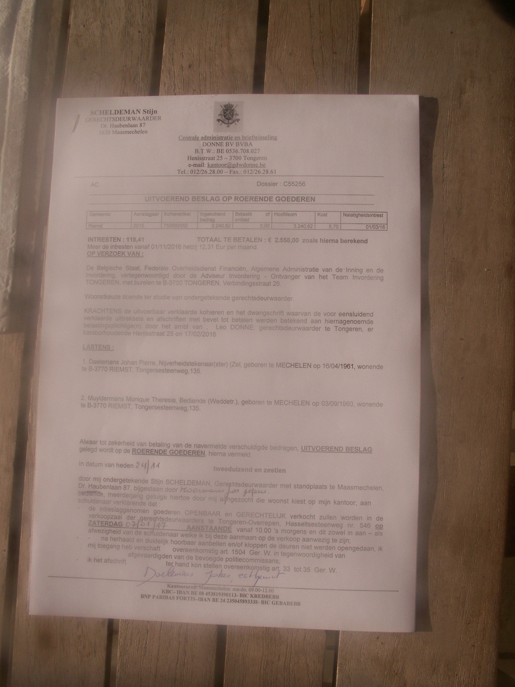 Uitvoerder - fiscus Ciney-Namen - vandaag dag 2489. Ondanks beloftes, oplossing nog niet in zicht.