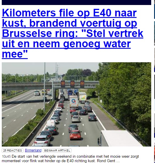 HLN waarschuwt de toeristen, neem genoeg water mee om brandende voertuigen te blussen.