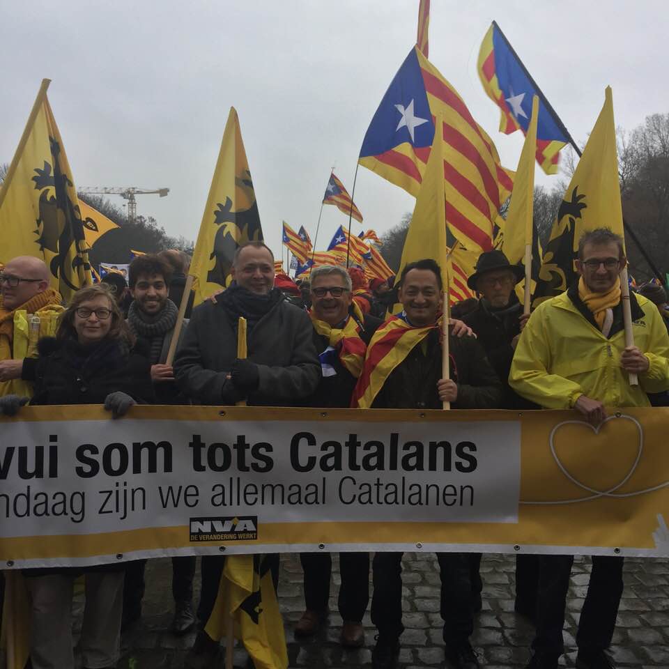 Die separatische Catalanen betogen ook in Brussel omdat hun leider Puidgemont hier zit. Dat heel die bende maar in Spanje blijft. Puidgemont mag voor mijn part gerust in België asiel krijgen maar hij moet toch niet te veel van zijn oren maken hier. Anders gaat hij maar terug naar Spanje. Dat Spanje zijn problemen maar zelf oplost. Wij hebben dat ook moeten doen in België.