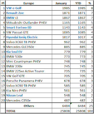 2. Je weet dan ook goed genoeg dat het eerste kwartaal in de regel altijd het zwakste verkoopskwartaal is. Mensen hebben minder goesting in de winter een nieuwe wagen te kopen 3. En nu zit het gros van Tesla ttz de model 3 ook nog op de boten. 4. Europese verkoop maakt de eerste keer een delivery hell mee. Dan is het toch wel heel evident dat Q1-2019 zwakker gaat zijn dan Q4-2018. Vanuit Duitsland zijn er weer een heel pak facturen (geregistreerde) bijgekomen, nu al opgelopen tot 7160. Wie had dat gedacht dat een zwak Tesla-land zoals Duitsland mogelijk voor 30%-aandeel van de model 3 verkoop kan zorgen in de EU-12+2 ? Norway 5112 21,67% Germany 7160 30,35% last date order: 15.03.2019 Netherlands 3117 13,21% Switzerland 1636 6,93% France 1166 4,94% Sweden 1115 4,73% Austria 1436 6,09% Belgium 649 2,75% Italy 489 2,07% Spain 476 2,02% Denmark 362 1,53% Portugal 292 1,24% Finland 512 2,17% Luxembourg 69 0,29% |
