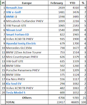 Als er in een maand of 2 geen boot arriveert met Model S en X verkopen ze daar amper iets van die 2 modellen in bepaalde landen van Europa. Komt wslk niet in de top 20. Maar dat kan een maand of 2 later al verdrievoudigen. Vooral Noorwegen. Maar Europa in het algemeen ook. Ik zal het voor de laatste keer eens proberen aan te tonen met maandcijfers: 1. Januari 2018: Je ziet Tesla model S/X staat nog niet eens bij de top 20 2. Februari 2018: Tesla model S nipt 20, Model X valt nog altijd uit de top 20: 3 Maart 2018, aha er is een boot of 2 met Teslas aangekomen, die voor Noorwegen varen direct naar daar: #3 Tesla Model S – Due to the automaker focus on the production of the Model 3 earlier on, Tesla starved the Model S deliveries in Europe, but then March came, and boatloads of S’s landed on this side of The Pond, with deliveries up 26% YoY, to 2.791 units, the nameplate best result since 2015. It appears the Model 3 reveal not only didn’t hurt sales, but actually helped it, as many buyers preferred not to wait and buy now the older model, instead of waiting for ages for the Model 3 to cross the Atlantic. Looking at individual countries, besides Norway’s usual contribution (676 units), the Netherlands (588 deliveries, a new record) and Germany (304) were also heavy contributors, in a generally positive month throughout the Continent for the Sports Sedan. Looking ahead, logic would say that deliveries should start falling as the year advances and the Model 3 arrival gets closer, but the Model S has surprised us before, so... Dus verkoop Tesla Europa: 2018, januari en februari: 1.033 Model S en 557 Model X: 1590 2018, enkel maart: 2.791 Model S en 1.758 Model X: 4.549 Laatst gewijzigd door Micele : 16 maart 2019 om 22:20. |