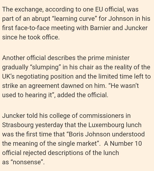 The penny dropping, is Boris die het door heeft dat de EU zelf geen deal wil, enkel een customs unie.