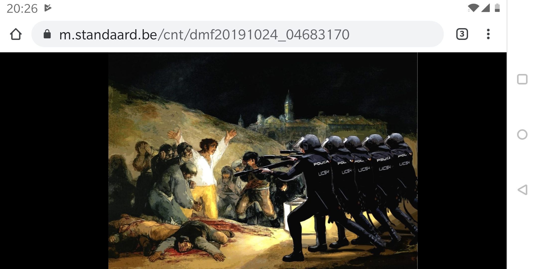 Het laatste voorbeeld: Tejero, veroordeeld kolonel-coup-pleger, werd zomaar door de flikken doorgelaten naar het herbegrafenisfeestje; terwijl de journalisten dit niet toegelaten werd. https://spanishrevolution.org/video-...lpista-tejero/ Nog iets? Een Amerikaan, gehuwd met een Spaanse en woonachtig nabij Barcelona sedert jaren, heeft met die vrouw kinderen die de Spaanse nationaliteit hebben, werd aangehouden tijdens een betoging met een estalada-vlag. De procedure om hem uit het land te zetten, is opgestart. (Vlaanderen en Walenland overdrijven met gezinshereniging; Spanje zal beletten dat een vader zijn eigen vrouw en kinderen niet meer kan zien.)