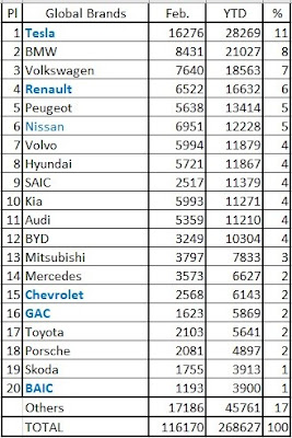 De globale januari + februari cijfers van @ Teslike = 25.900, zijn alvast niet dezelfde als de cijfers van ev-sales die met 28.269 significant hoger zijn: Citaat: