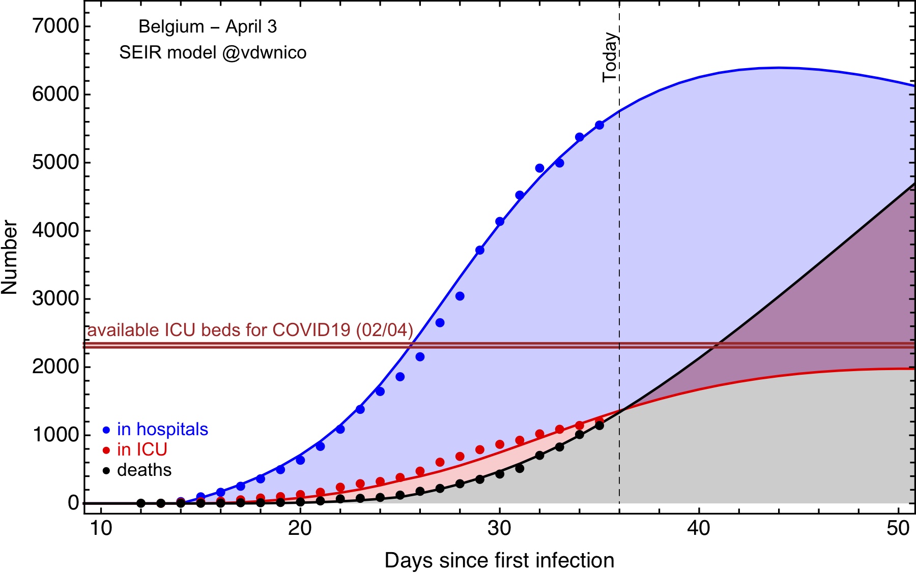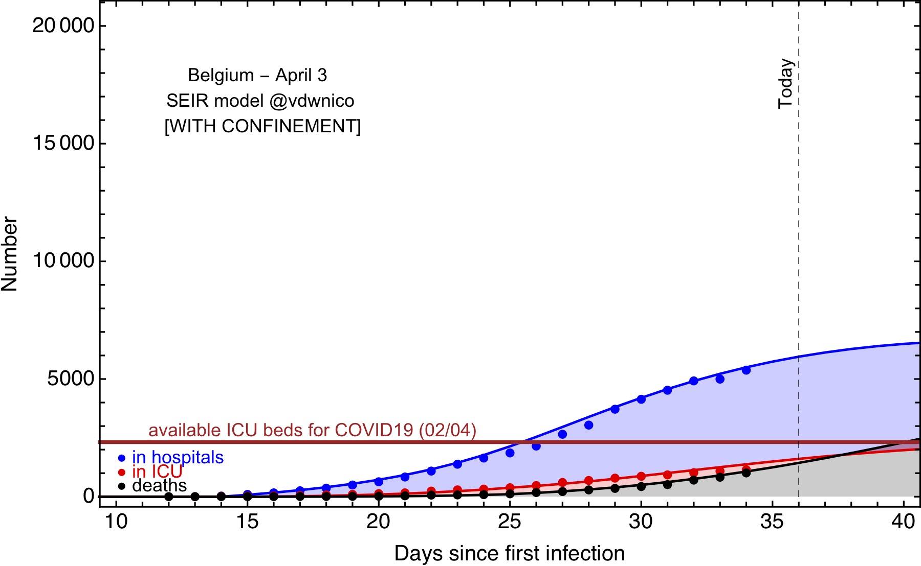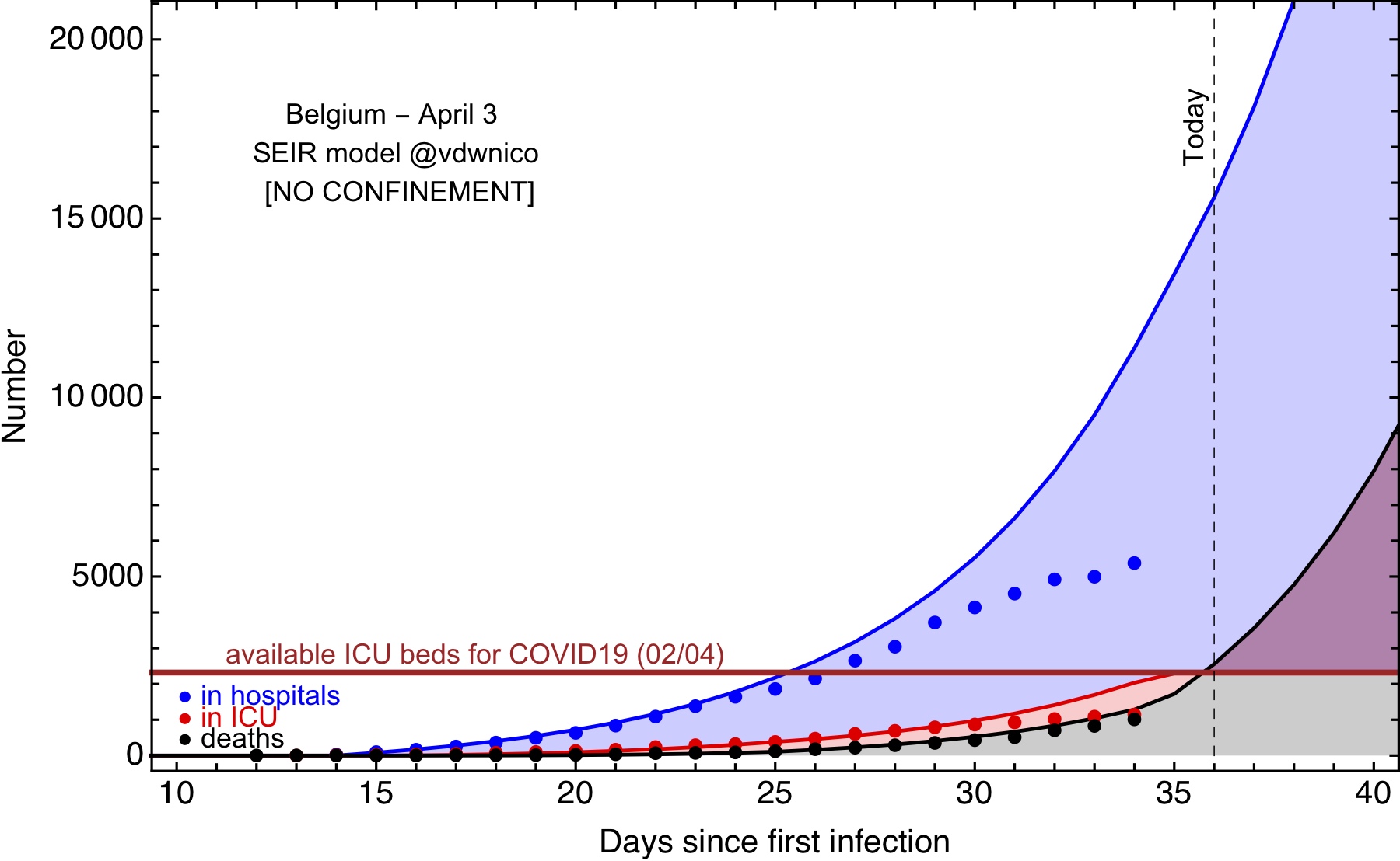 met de data van vandaag wordt het dit: Zonder de maatregelen was de situatie nu al bijna niet meer oner controle te houden. We vermijden een massa ziekenhuisopnames en doden. |