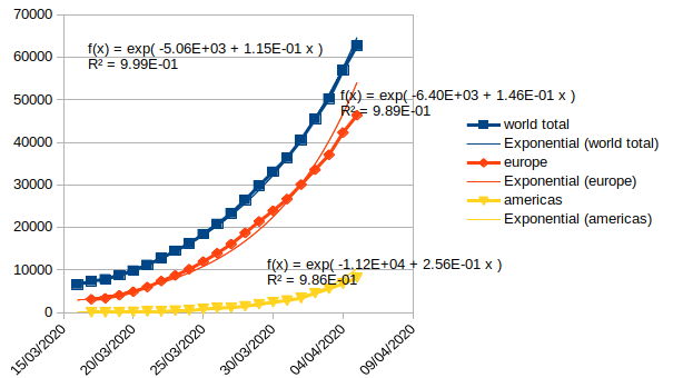 Italie is nu duidelijk aan het dalen. Spanje is duidelijk over de piek. Belgie is chaotisch. Van Frankrijk kunnen we niks meer zeggen sinds hun nieuwe telwijze. Moet eerst terug een lijn gaan vormen. De USA zet flink door. |