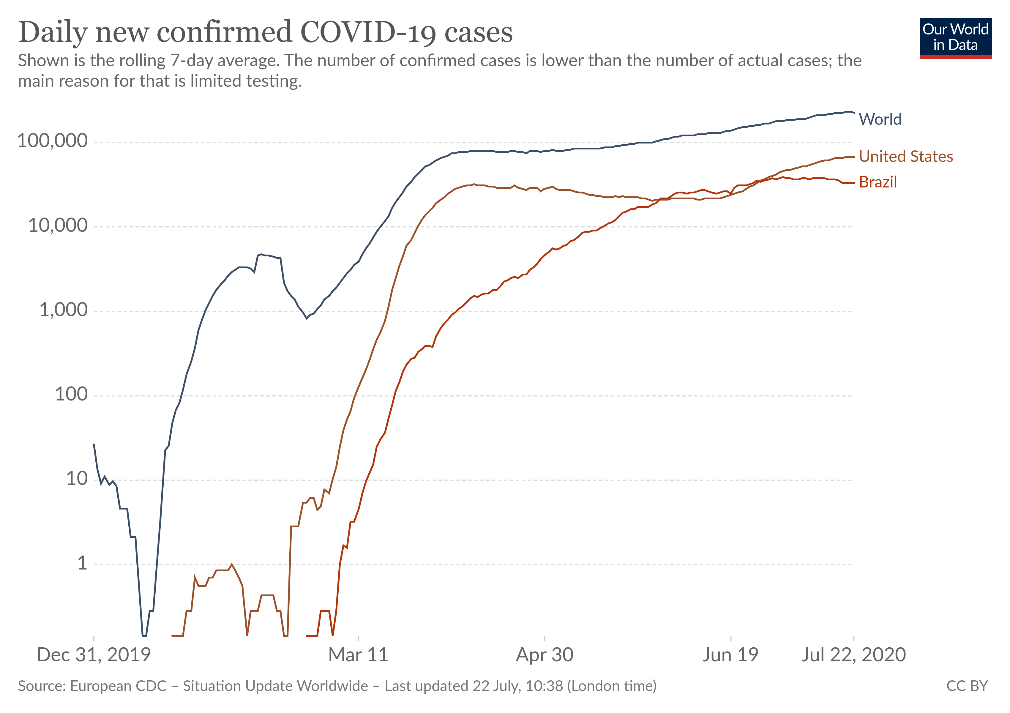 Echter, dat komt omdat men enkele maanden geleden de meeste besmettingen niet vaststelde. Wat telt is natuurlijk niet het aantal besmettingen. Want op die manier was "verkoudheid" twee jaar geleden ook totaal ontsnapt aan elke controle, en waren het aantal mensen met een verkoudheid onrustbarend aan het stijgen... Wat telt is het aantal zwaar zieken, dat ook gemeten wordt door het aantal doden. En dan zien we iets helemaal anders: een "flattening the curve" zoals het ideaal zou zijn, niewaar ? Sinds april is dat 5000 - 6000 doden per dag in de wereld. Dat is een klein beetje meer als het autoverkeer in de wereld. |