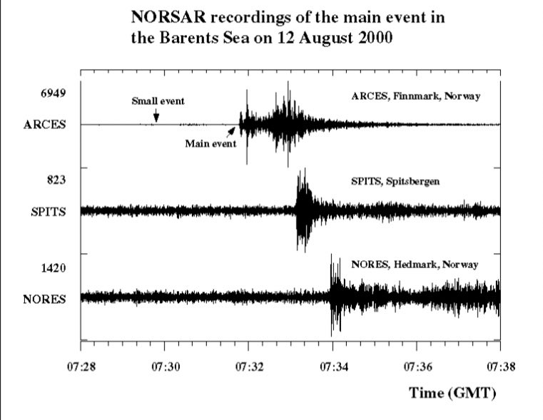 ![]() 3 Noorse seismografische stations registreren de explosie van de Kursk: