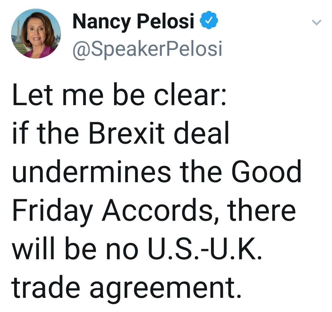 “Whatever form it takes, Brexit cannot be allowed to imperil the Good Friday Agreement, including the stability brought by the invisible and frictionless border between the Irish Republic and Northern Ireland,” |