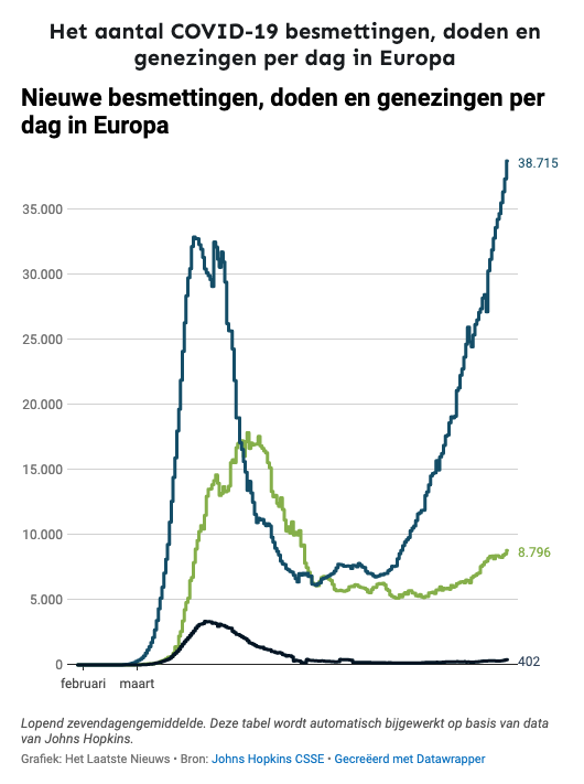 Dat klopt. Sinds het minimum in de eerste week van juli zijn we gestegen van 'totaal verwaarloosbaar' naar 'iets meer'. Als we nog een factor tien stijgen, komen we in de problemen.
