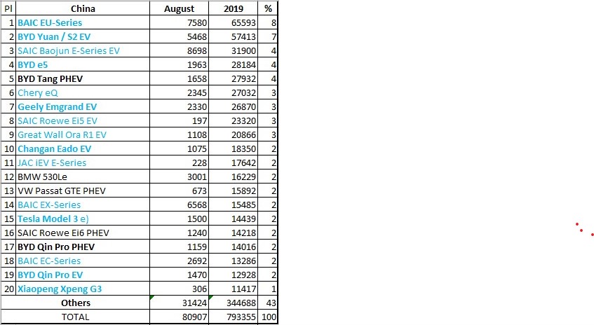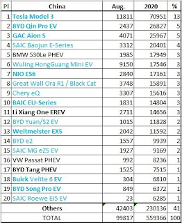 http://ev-sales.blogspot.com/2020/09...gust-2020.htmlVerleden jaar verkocht Tesla dezelfde 8 maand slechts 14,4k, enkel import: ![]() De totaalverkoop van stekkerwagens 8 maand YTD is ook gedaald omwille van het wegvallen van premies voor de EVs met (te) weinig rijbereik, en dat waren er veel. Maar ondertussen hebben de constructeurs voor grotere batterijpacks en aangepaste modellen gezorgd, men ziet het aan het cijfer augustus '20 an sich, namelijk 19k meer stekkerwagens dan augustus '19. Laatst gewijzigd door Micele : 18 september 2020 om 22:30. |
