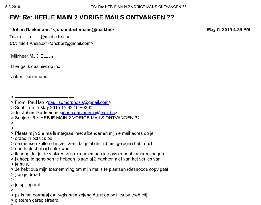 U bent zo vrij om te verwijzen naar een post waar bedrijvendokter zijn mening neerschrijft. Deze mail mocht ik zo'n 5 jaar geleden ontvangen van dezelfde bedrijvendokter. Zoals je kan lezen geeft hij zelf de toestemming om de mails publiek te maken. In CC is de mail ook naar de BBI gestuurd. Je ziet, hoeveel wind de fanclub van onze fiscus ook probeert te maken, het komt steeds neer op één en dezelfde stommiteit. ![]()