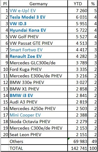 Ook EVs met ~200 km rijbereik verkopen goed in Duitsland.