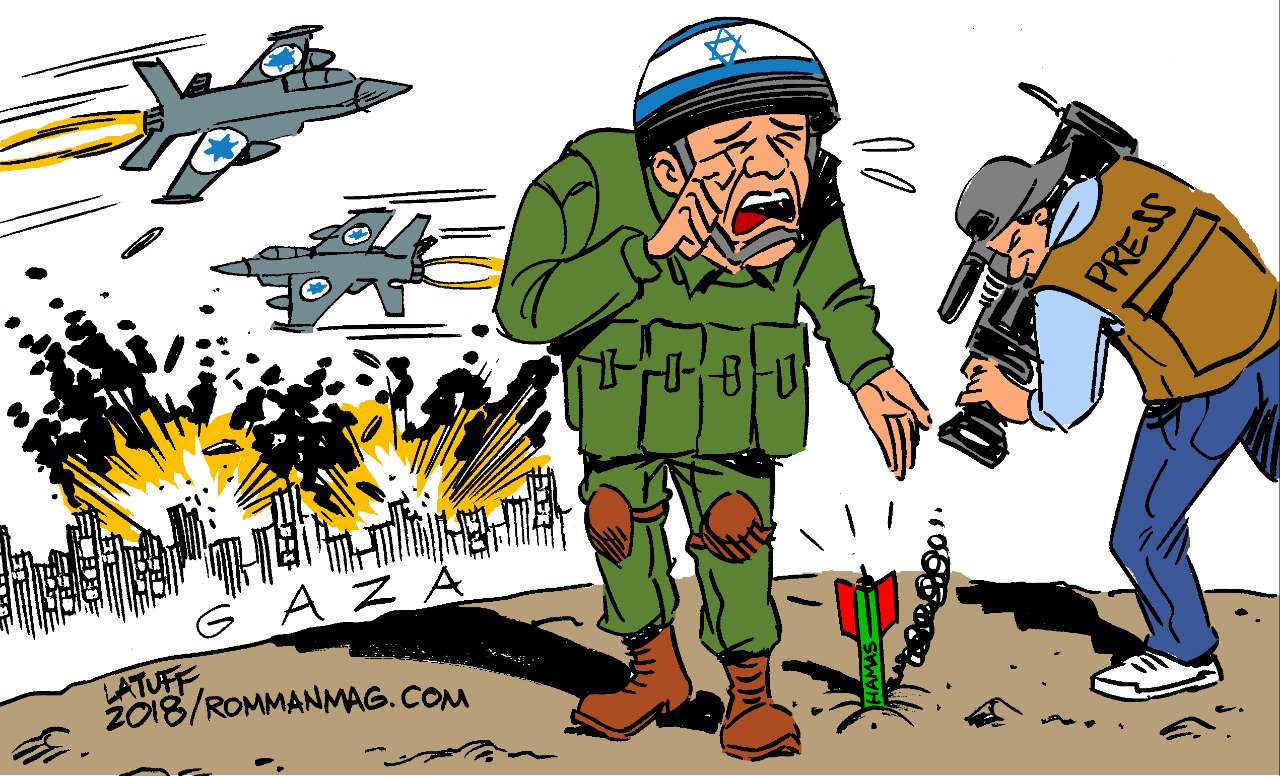 ![]() Wat een leugenaar is die cartoonist, alsof die raketten van Hamas niets van schade aanrichten.