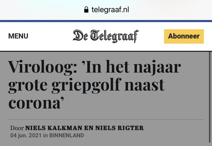 https://www.dagelijksestandaard.nl/2...are-griepgolf/ “In de jaren ervoor was het soms al zwaar voor de zorg als het een heftig griepseizoen was,” aldus Kroes die daarmee tussen neus en lippen snel even toegeeft wat wij critici al tijden zeggen; dat de ziekenhuizen niet zo zeer vol lagen omdat corona zo vreselijk was, maar omdat het kabinet de zorg totaal heeft uitgekleed zodat we met geen enkel serieus virus kunnen omgaan. Afijn. Kroes gaat verder: “We gaan oplevingen zien van het coronavirus als de seizoensinvloed verandert en men weer naar binnen gaat. Maar daarbovenop gaat een griepgolf komen.” Want, stelt Kroes, we hebben nu twee jaar lang eigenlijk geen griepgevallen meer gezien (zo gek, he?). Maar dat gaat nu veranderen. “Je ziet dan het effect van een oscillatie, dat er een bepaalde griepimmuniteit in de bevolking weg is,” omdat de griep te lang is weggeweest of zoiets.. “Je kunt dan een rebound krijgen, bovenop de corona-uitbraken die lokaal flink huis kunnen houden.” |