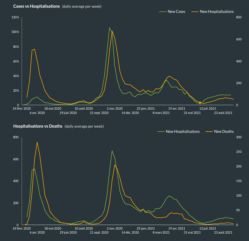 Op de website van sciensano staat een super plotje dat gans de lulligheid van deze crisis samenvat.