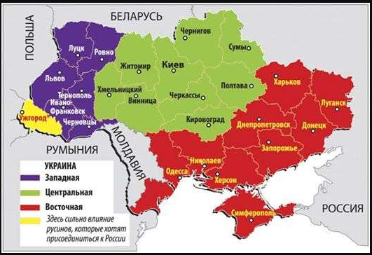 Eerder hebben we de nieuwe staat in wording "Novorossiya" besproken. Ook een andere entiteit wordt hier en daar geïntroduceerd: "Malorossiya" (het groene gedeelte). (fig.)