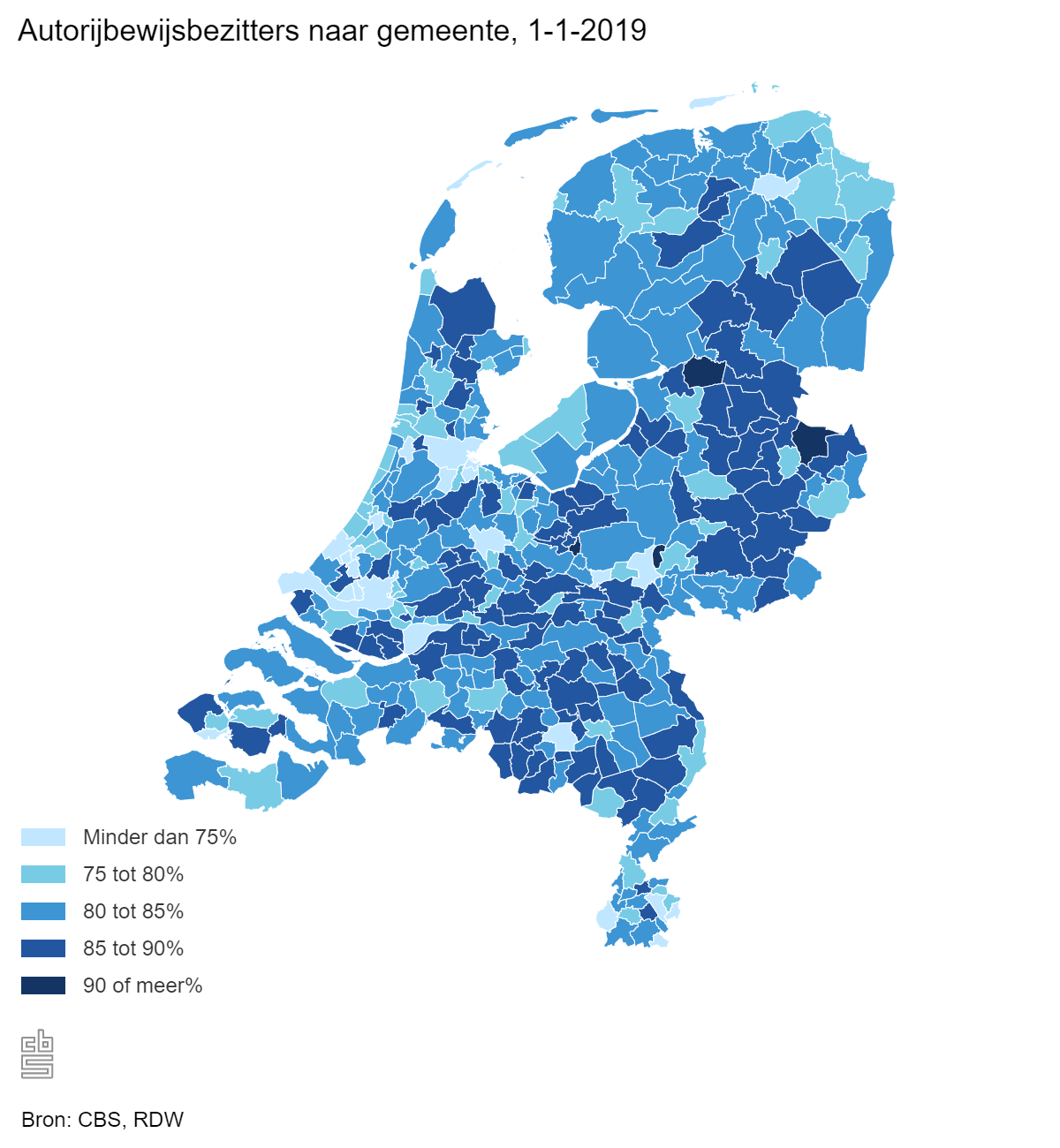 In iet of wat (grote) stad doen het 36% van de volwassen bevolking (+18) zonder rijbewijs.