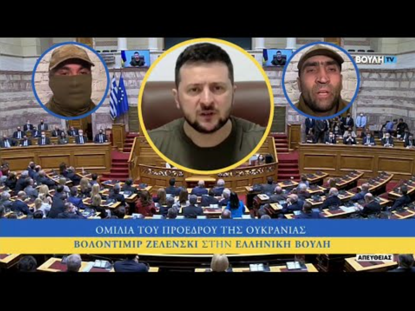 In Griekenland bracht de drugsverslaafde komiek een Azov nazi mee naar het Griekse parlement.