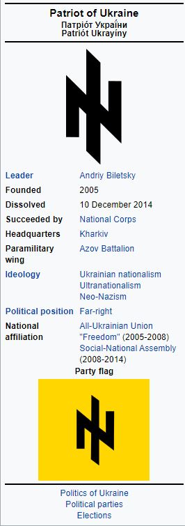 Dus de beschuldiging van nazisme kwam niet alleen uit Russische hoek. Dat prefereert men nu tijdelijk even uiy het geheugen te wissen, in het kader van "de vijand van mijn vijand is mijn vriend". En dat Amerikanen echt niet kieskeurig zijn in de vrienden die ze kiezen bewijzen Osama Bin Laden, Pinochet, Franco, genocidaire regimes in Latijns-Amerika en Azie, het Apartheidsregime, etc. dus Azov en co. passen wel in dat rijtje. |