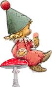 Ik kan ze niet vinden, dus ik denk dat ze achter die paddestoel zitten.