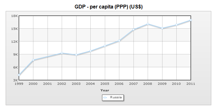 En niemand ontkent de problemen die het nieuwe Rusland kende na de overgang. Er was ook een complete puinhoop geërfd en ALLES moesthervormd worden. Desondanks was het GDP vanaf 2007 al hoger dan de beste dagen van de USSR en werd in 2009 een groeiratio van 8% bereikt, hoger dan ooit daarvoor in de Russische geschiedenis.