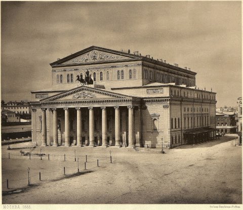 Dan was het nog eens gebombardeerd in WW2... en dan verder een geschiedenis vol restauratie. Afbeelding uit de vroege 19e eeuw : https://en.wikipedia.org/wiki/Bolshoi_Theatre