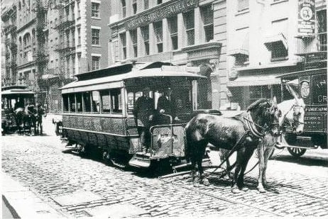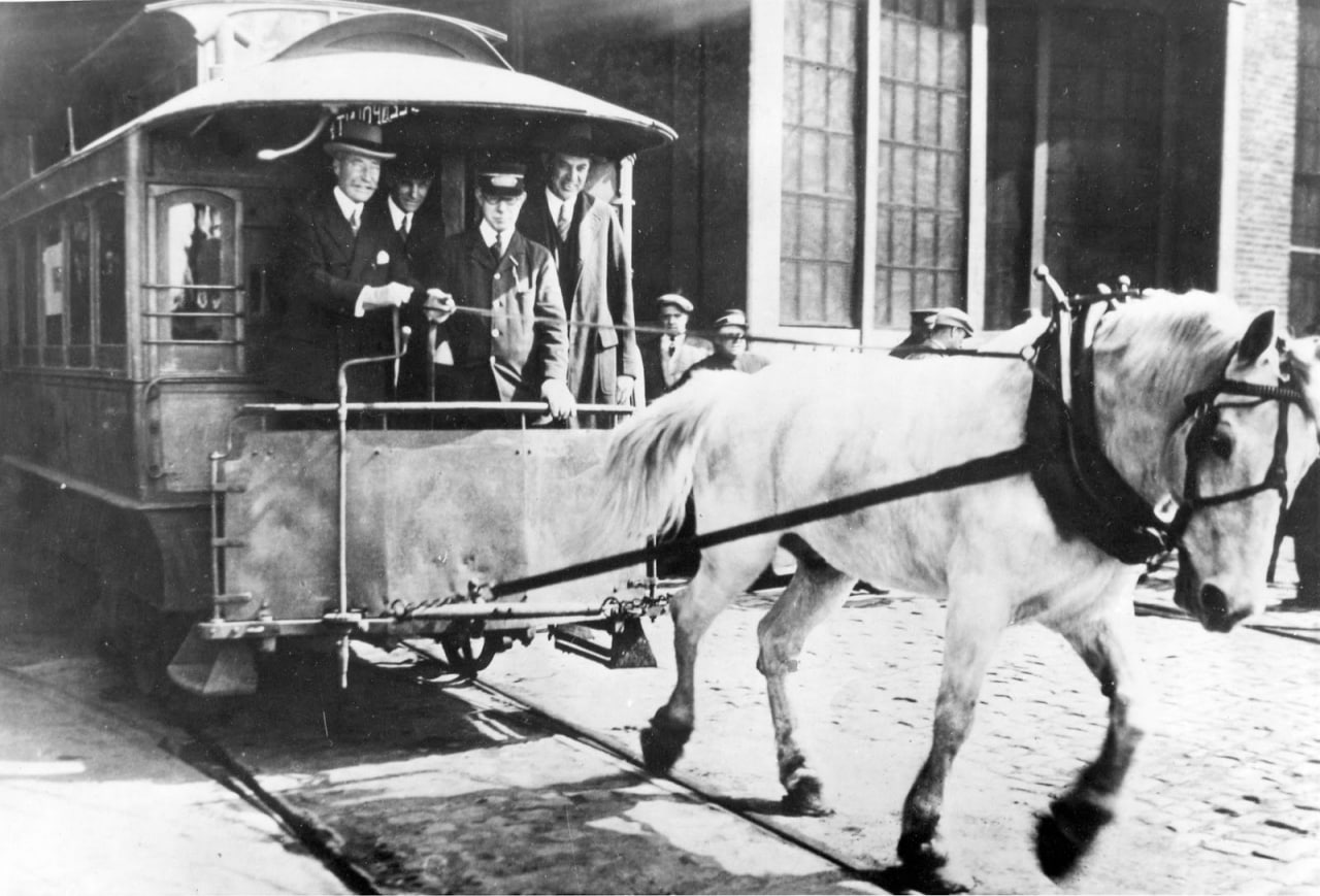 Waarom werd deze trolley door een paard getrokken terwijl er al sporen liggen?