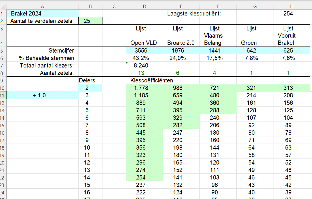 Als er 99 valse volmachtstemmen op Open VLD zouden terechtkomen, verschuift er een zetel, en verliest O-VLD de absolute meerderheid.