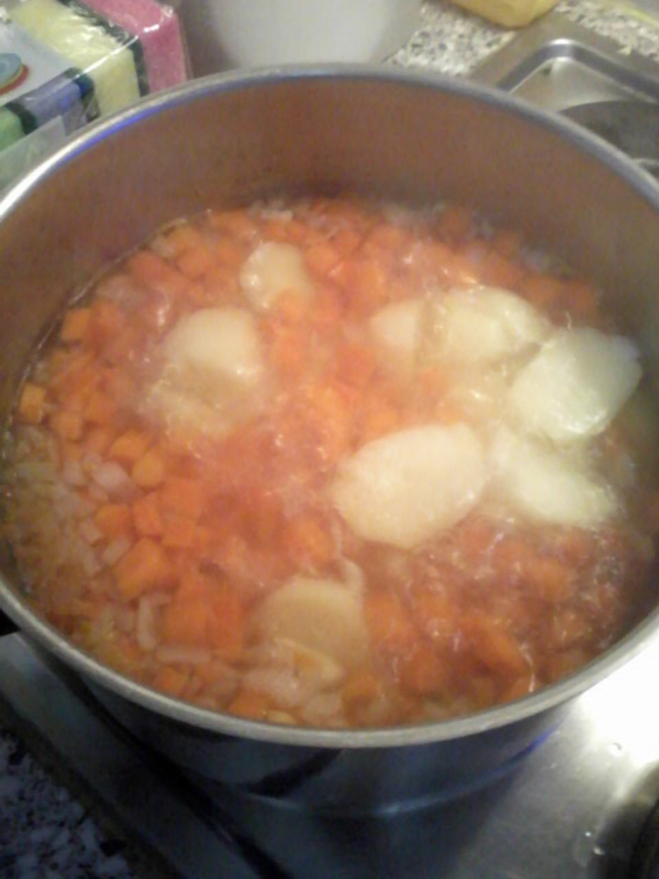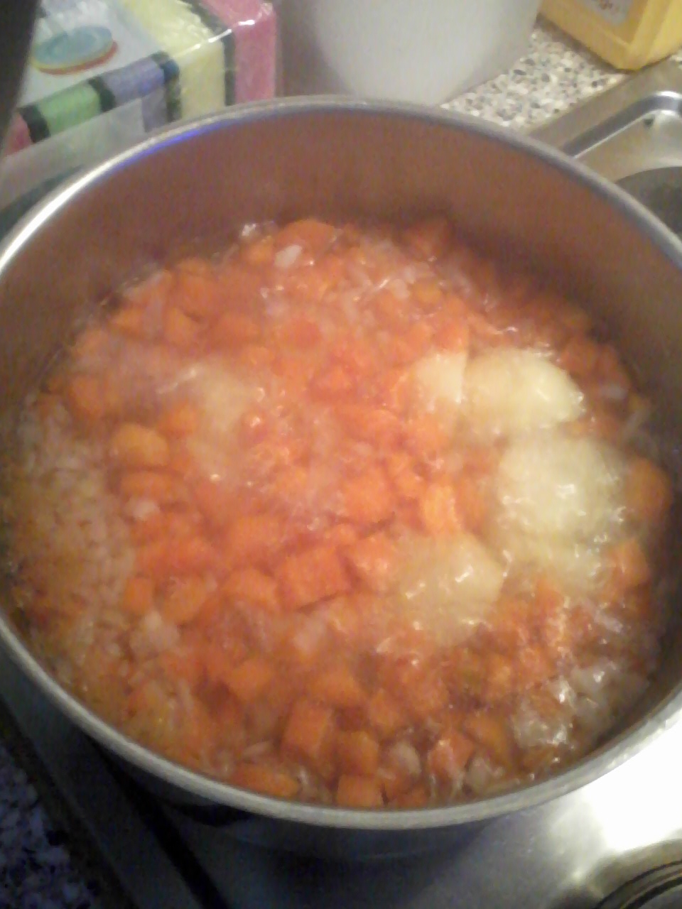 ![]() ik had nog een gezond hongertje. De wortel is ondertussen al op, de fles wijn nog niet