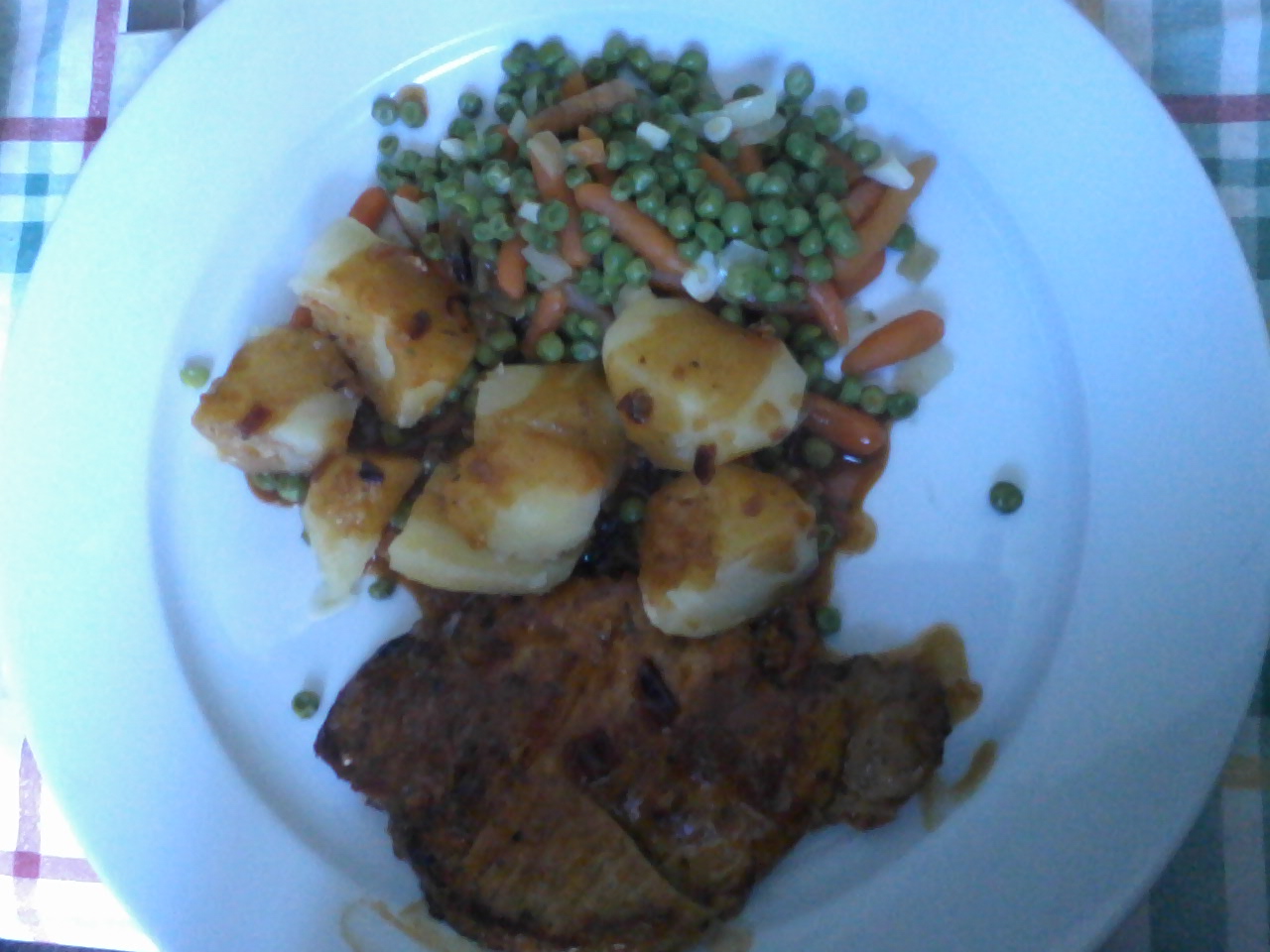 Eendenbout met Bohemer knoedels en rodekool. Best lekker... voor een zwembadcafetaria. Ah, de geneugten van een late aankomst in een stad die je niet kent, met een hotel aan de stadsrand...