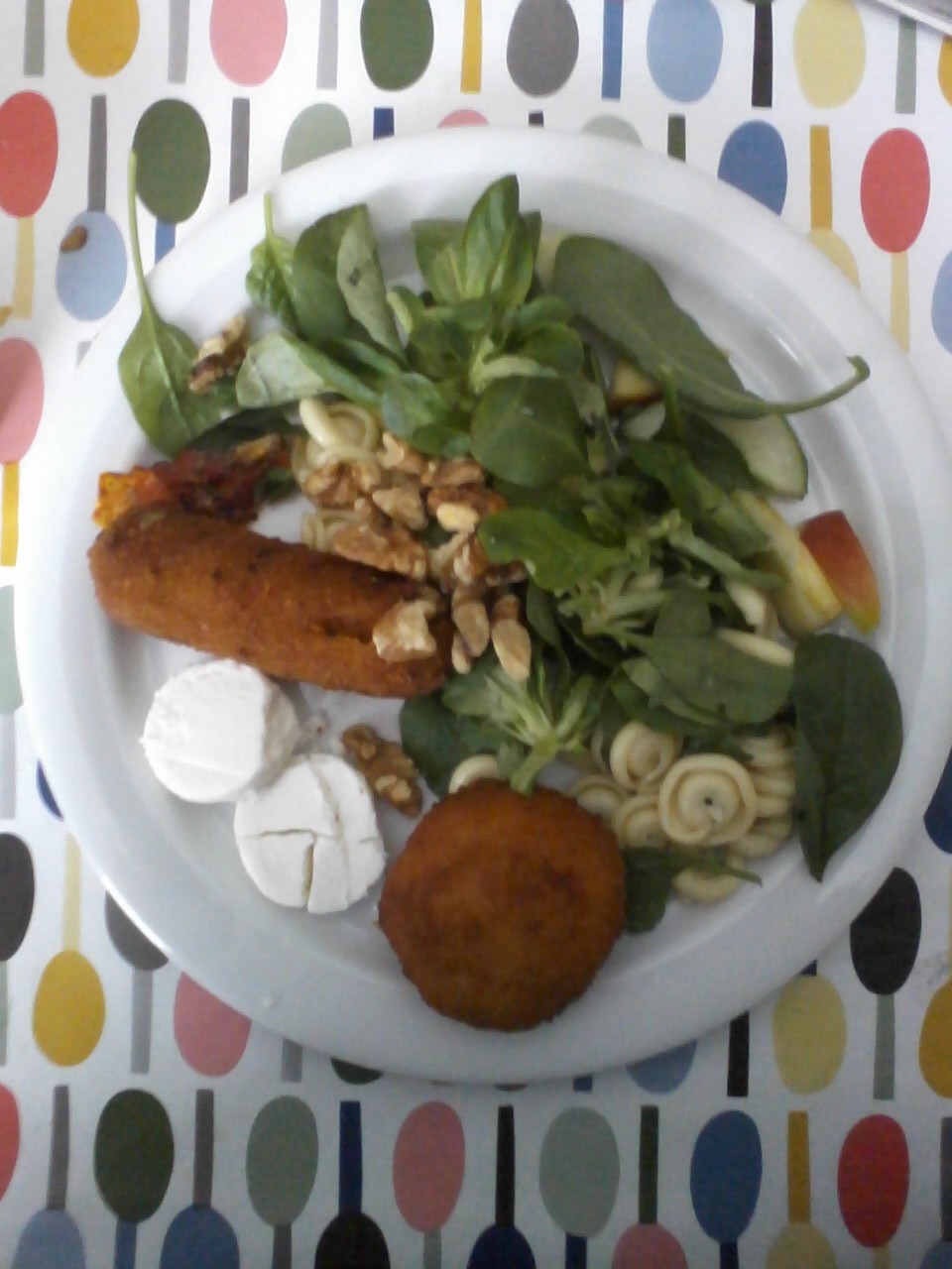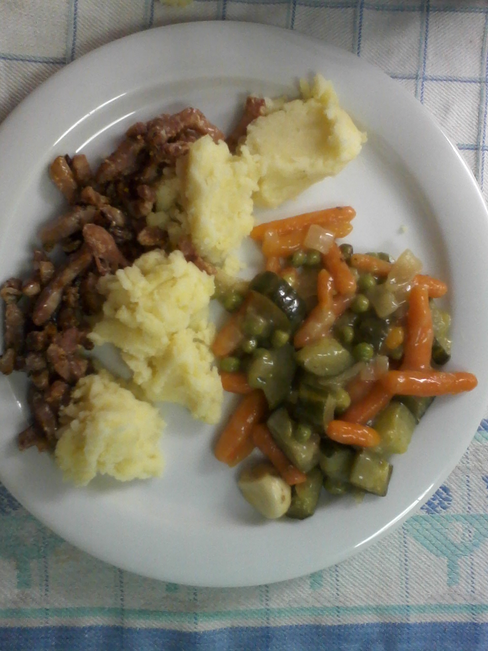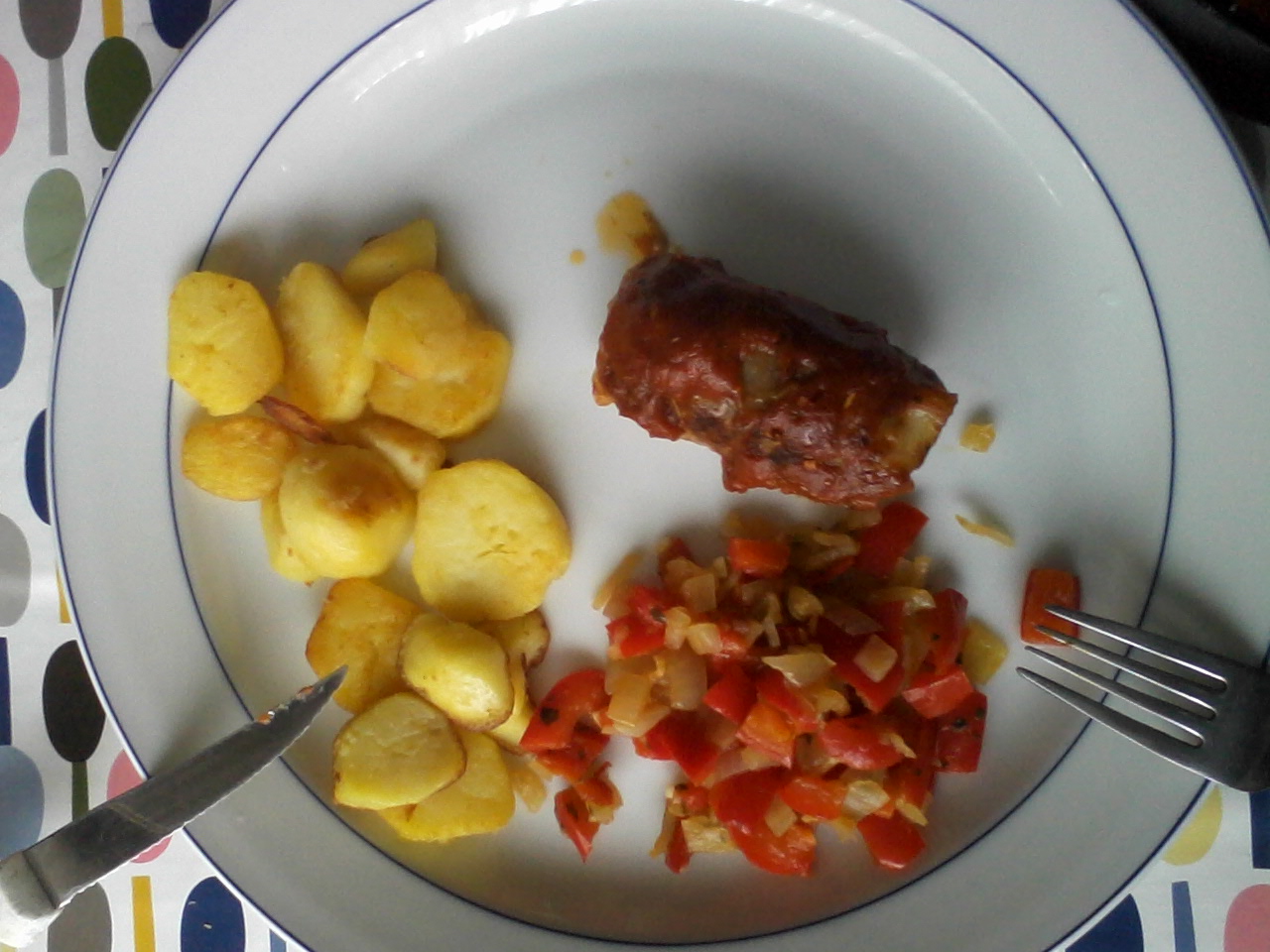 's Middags een burger met frieten gegeten dus nu een sneetje toast met kleine kom fruitsla... en veel water.