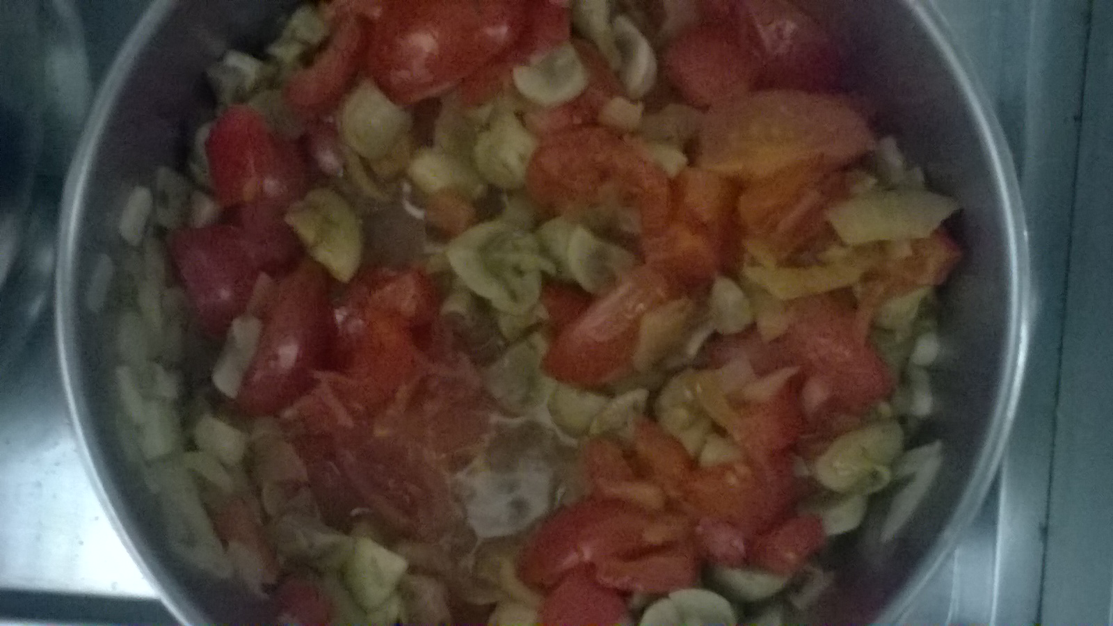 ![]() Vandaag heeft mijn schatje heeerlijke scampi's gebakken, met heel fijn gesnipperde sjalotjes , afgewerkt met passata, ongelooflijk veel look (compensatie voor gisteren ![]() Met lekkere tagliatelle die al dente is gekookt. Om duimen en vingers van af te likken. En een slaatje van twee soorten paprika als bijgerecht.
