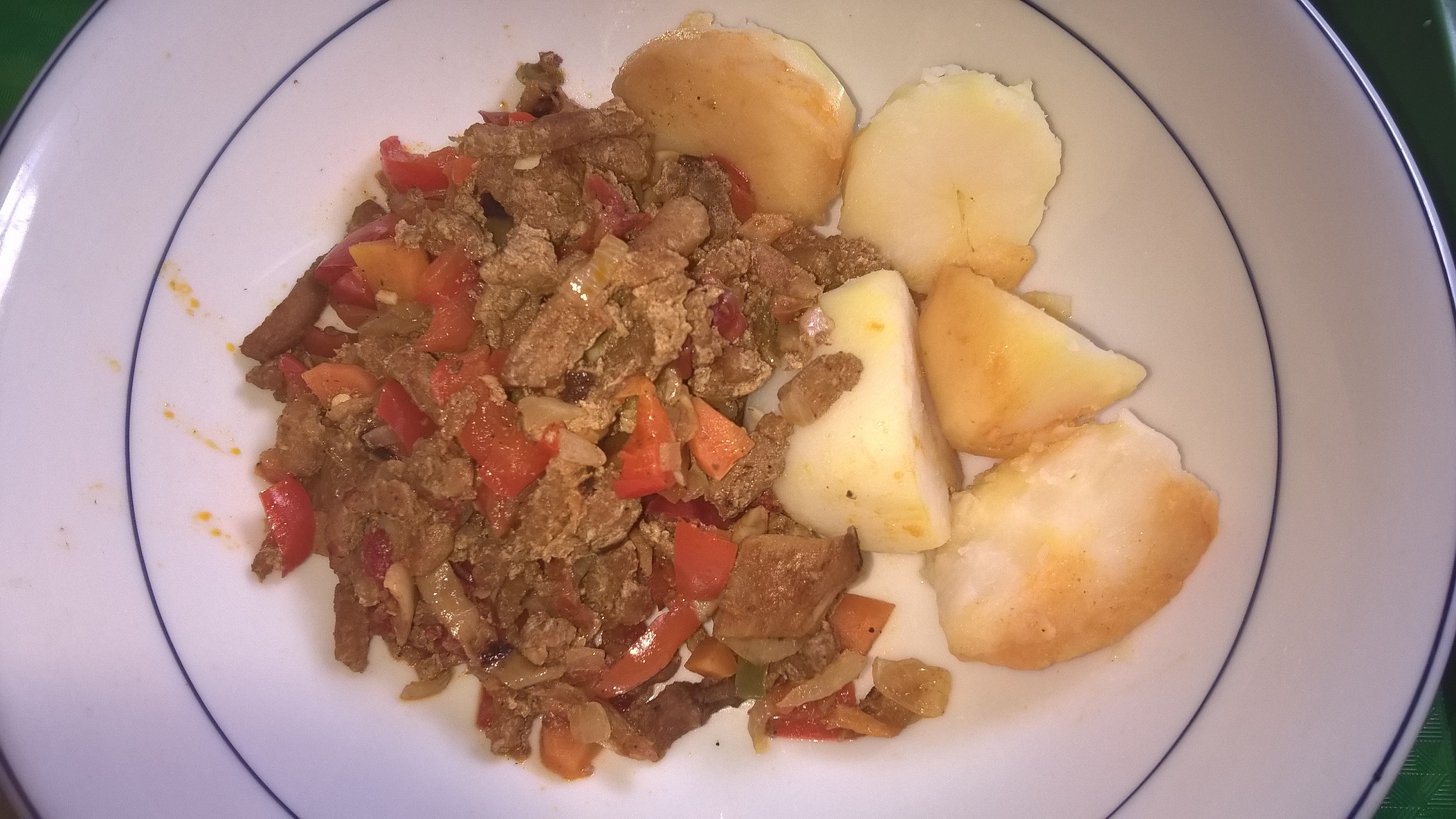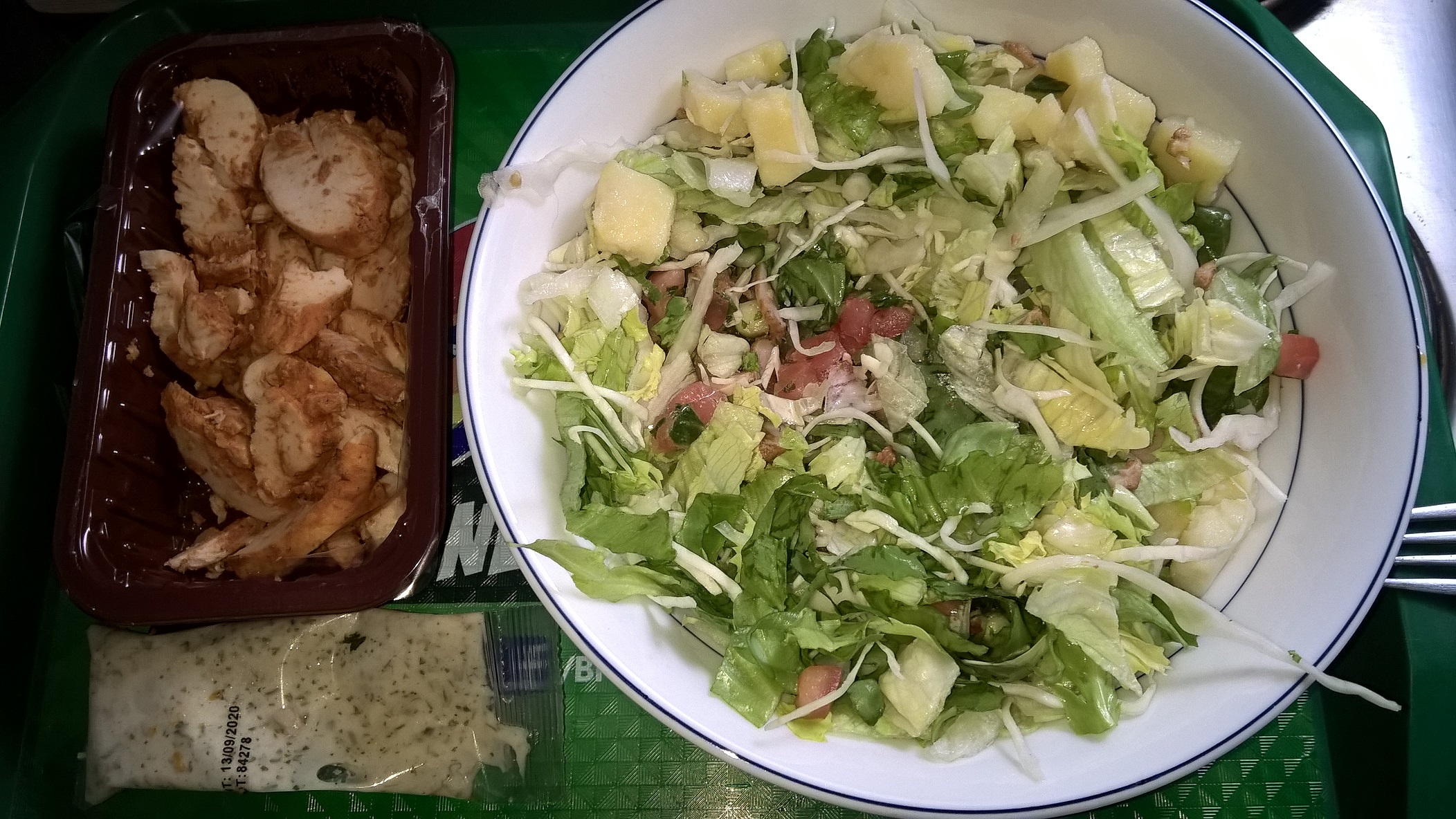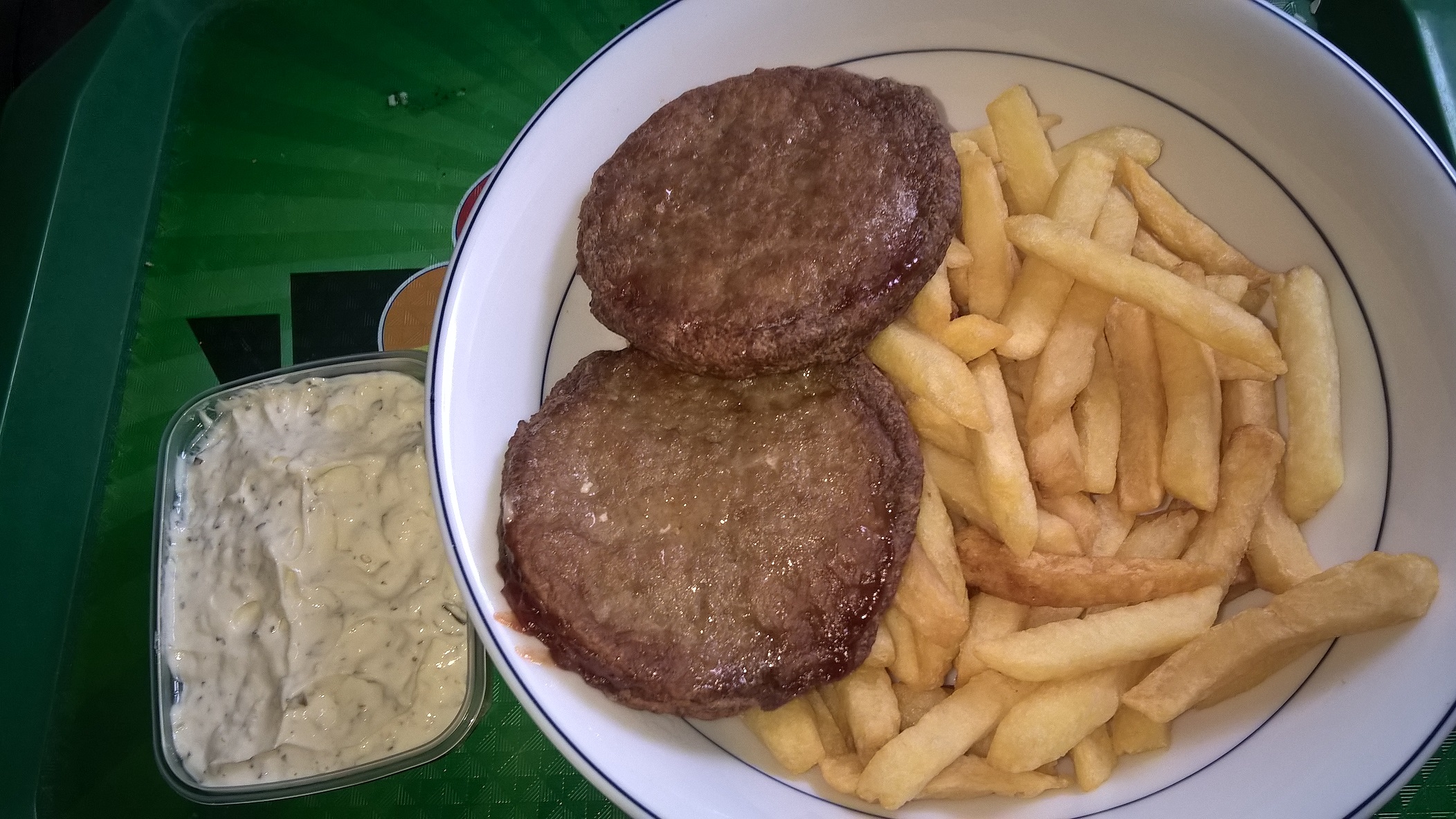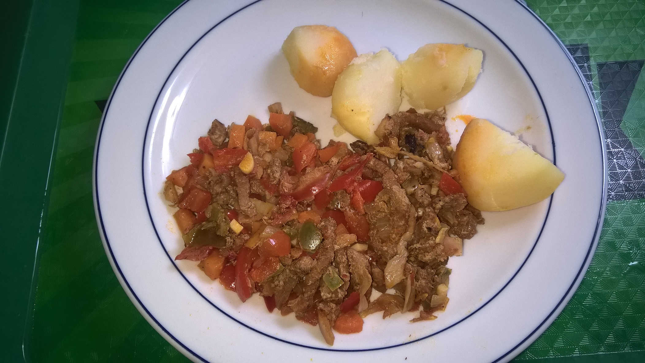 ![]() Patatjes, groenten en vlees. En morgen ook, en de dag daarna ook.
