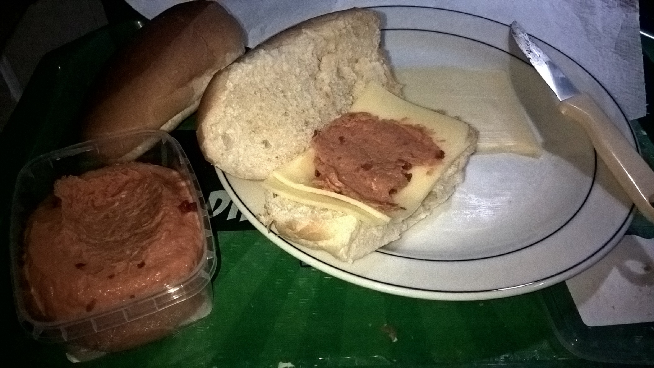 ![]() Beschuit met Hollandse kaas en spaghettikruiden opgewarmd in de micro.+ desperado met limoenschijfje.