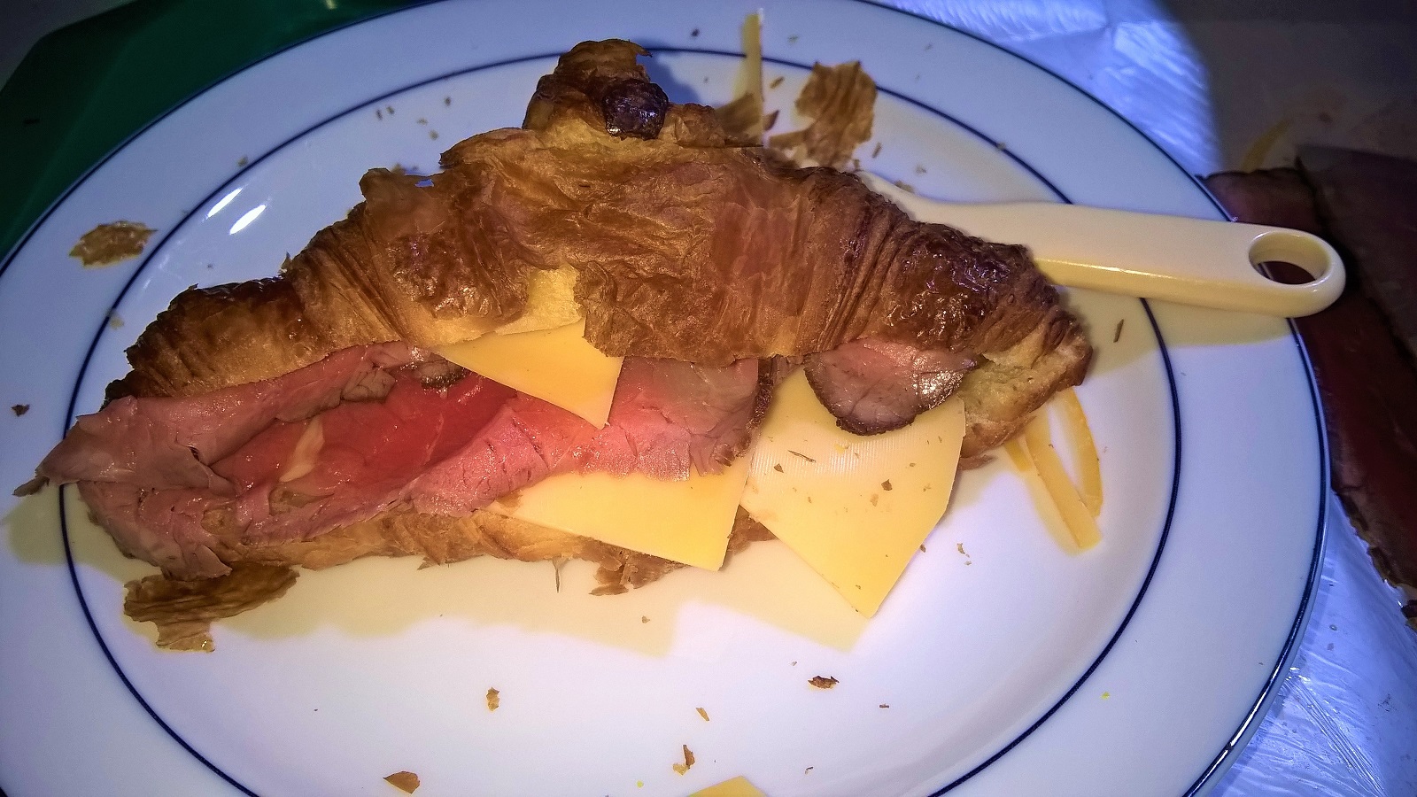 Daarstraks was het met toast en gesmolten plakjes emmenthaal.