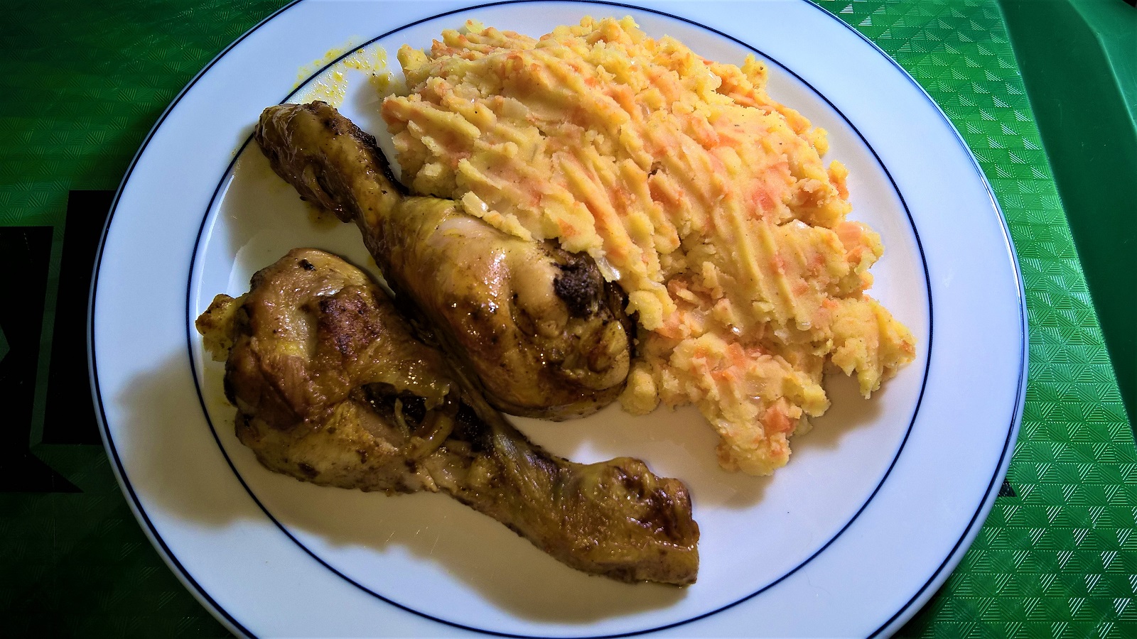 kip met curry en nasi goreng