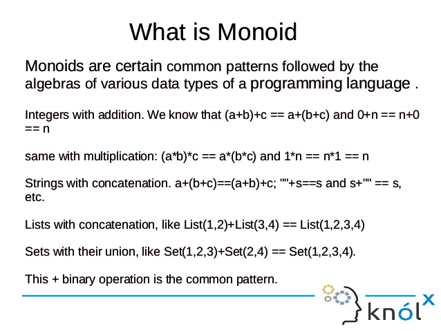 U trok zelf de aandacht naar de free monoide door die operator concatenation toe te voegen ,gooi hem uit je handtekening en vervang het door * en het is juist.